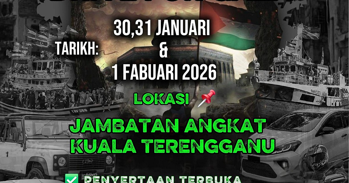 19 Jan - Muslim Care Malaysia Society dengan kerjasama Drive For Gaza Official, DVAC Official & Kerajaan Negeri Terengganu akan menganjurkan satu Perhimpunan Solidariti dan Konvoi Kenderaan sempena “MISi Drive For Gaza” pada:Konvoi...